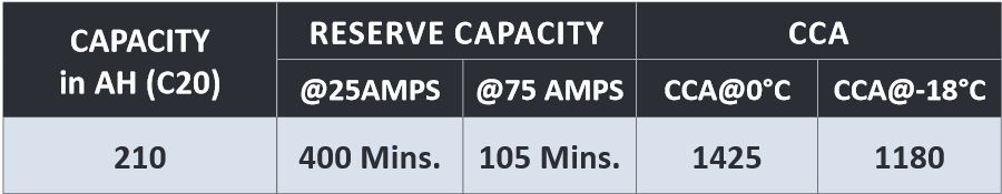 | Capaciteit | 200 - 500 Ah |